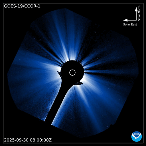 2025/10/ 1 12:31 更新 太陽風の速度が700km/秒に高まっています。磁気圏の活動も活発です。 担当 篠原 昨日のニュースの後、 太陽風の速度は400km/秒と平均的な状態が続きましたが、 磁場強度は17nT程度に強まって行きました。 そして、30日20時(世界時30日11時)になると、 速度が上昇を始めて、高速の状態になり、 今朝、1日9時(世界時1日0時)には、700km/秒に達しました。 コロナホールの影響で 太陽風の速度が高まるのではないかと予想していましたが、 だいぶ早くやって来ました。 太陽風の磁場強度は、速度が上がると10nTへ下がり、 グラフの最後は8nTとやや強まった状態です。 太陽風磁場の南北成分は、 グラフの前半では -10nTくらいの、 後半は -5nTの南向きの変化が発生しています。 速度の高まりも重なって、磁気圏の活動は活発になり、 AE指数は、1000nTに達する大きい変化が連続的に発生しています。 Dst指数も -98nTと昨日よりも大きい変化になっています。 太陽風の強まりは、この後どの様に推移するでしょうか。 GOES衛星SUVI 195の太陽コロナ写真では、 コロナホールは、太陽の西側(右側)に進んだくらいです。 太陽も活動的な状態が続いています。 30日18時半(世界時30日9時半)に、南西(右下)の4226黒点群でM2.7、 30日21時(世界時30日12時)に、左隣の4238群でM1.8、 そして、1日11時半(世界時1日2時半)に、中心部の4232群でM1.2と 中規模フレアがあちこちで発生しています。 このうち、4238群のM1.8について、 GOES衛星SUVI 131の動画を掲載します。 また、時間としてはさかのぼりますが、 30日17時(世界時30日8時)頃に、 南西の端でプロミネンス噴出が発生しています。 GOES衛星SUVI 304では、大きい噴出が見えています。 GOES衛星のCCOR-1では、 右下に広がるCME(コロナ質量放出)が観測されています。 横向きの噴出なので、地球への影響はないでしょう。 ![]() 4238黒点群で発生した、M1.8の中規模フレア。 (c) GOES衛星SUVI 131 (NOAA)、(動画加工 : 宇宙天気ニュース) ![]() 南西の端で発生したプロミネンス噴出。 (c) GOES衛星SUVI 304 (NOAA)、(動画加工 : 宇宙天気ニュース) ![]() 太陽の右下に広がるCME。 (c) GOES衛星CCOR-1 (NOAA)、(動画加工 : 宇宙天気ニュース) ![]() GOES衛星SUVI 195カメラによる太陽コロナの様子 (c) GOES衛星SUVI 195 (NOAA) ![]() SDO衛星による太陽の可視光写真。SOHO衛星のWebページより取得しました。 (c) SDO (NASA) ![]() ACEが観測した太陽風の磁場(黒線は全体の強度、赤線は南北成分) 磁場の向き、プラズマの密度、速度、温度 (c) データ:NOAA/SWPC、作図:宇宙天気ニュース ![]() AE指数(速報値) 下段のAEグラフの値が高くなると、オーロラ活動が活発化しています。 (c) 京都大学WDC ![]() ![]() 27日の太陽周期に合わせた図 太陽が同じ面を地球に向けていた27日前の変化から、今後を予想することができます。 (c) 作図:宇宙天気ニュース