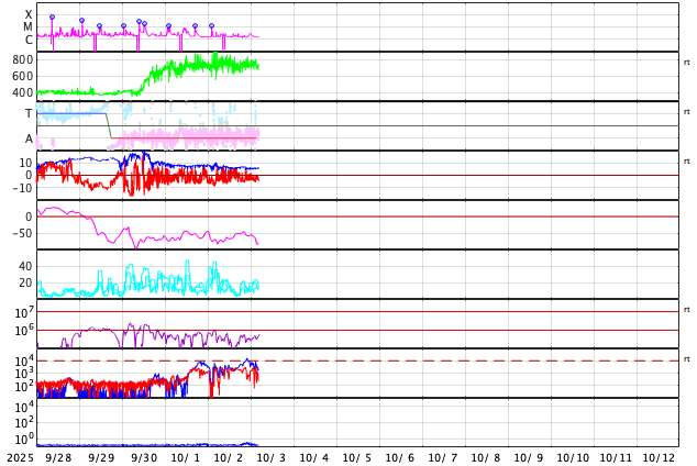 GOES衛星の太陽X線強度。赤・橙 = 0.1〜0.8 nm、青・紫 = 0.05〜0.4 nm (c) データ:NOAA/SWPC、作図:宇宙天気ニュース ![]() | |||||||||||||||||||||||||||||||||||||||||||||||||||||||||||||||||||||||||||||||||||||||||||||||||||||||||||||||||||||||||||||||||||||||||||||||||||||||||||||||||||||||||||||||||||||||||||||||||||||||||||||||||||||||||||||||||||||||||||||||||||||||||||||||||||||||||||||||||||||