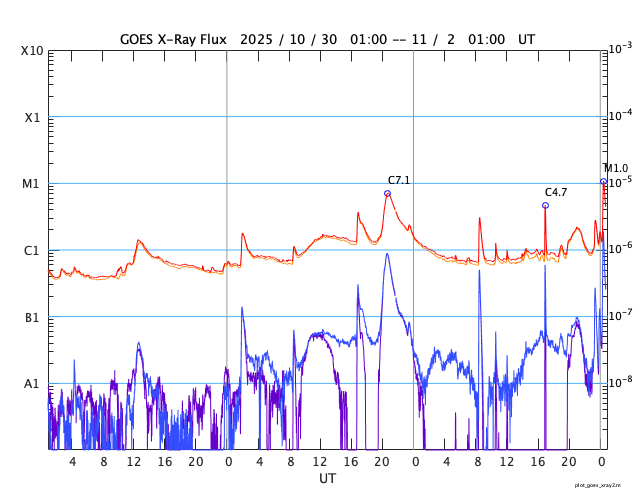 GOES衛星の太陽X線強度。赤・橙 = 0.1〜0.8 nm、青・紫 = 0.05〜0.4 nm (c) データ:NOAA/SWPC、作図:宇宙天気ニュース ![]() | |||||||||||||||||||||||||||||||||||||||||||||||||||||||||||||||||||||||||||||||||||||||||||||||||||||||||||||||||||||||||||||||||||||||||||||||||||||||||||||||||||||||||||||||||||||||||||||||||||||||||||||||||||||||||||||||||