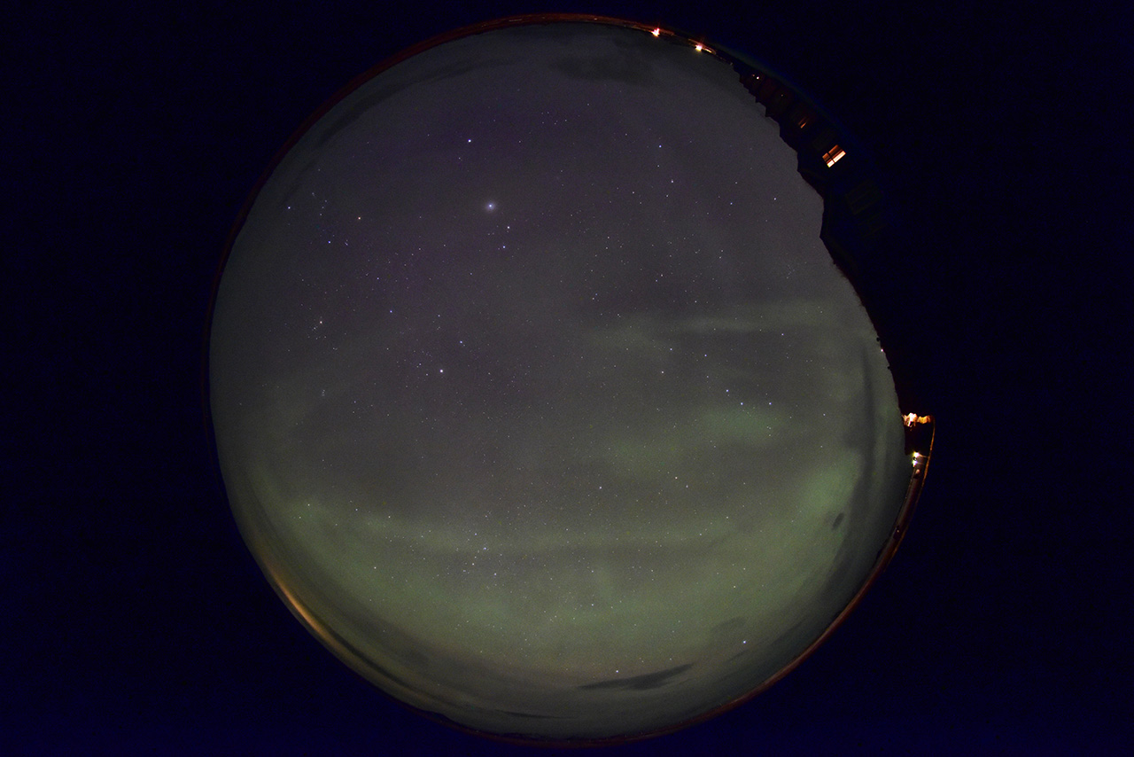 2025/12/22 12:55 更新 太陽風の速度は680km/秒に高まっています。アイスランドのオーロラをどうぞ。 担当 篠原 アイスランドに滞在中の藤井哲也さんより、 現地21日未明と朝の時間に撮影されたオーロラの写真をいただきました。 撮影場所は、ミーヴァトン湖畔から80kmほど移動した場所とのことで、 真っ黒な溶岩や火山を真っ白な雪が覆っているそうです。 1枚目は、この直前まで曇っていて、 やっと星空が見えて撮影できたとのことです。 AE指数を見ると、この少し前に500nTの変化が起きていたのですが、 この撮影の頃には変化が小さくなっています。 写真のオーロラが穏やかなのは、 変化が落ち着いたタイミングだったためかもしれません。 2枚目は時間としてはすっかり朝になっています。 快晴で満天の星空だったそうです オーロラは北の空に低く見えていたとのことです。 この頃から、太陽風の速度が高まって、オーロラの活動が強まって来ました。 次の夜からは状況が大きく変わるかもしれません。 現地の貴重な情報をどうもありがとうございます。 太陽風は、昨日のニュースの後から速度が高まっていき、 400km/秒と平均的な状態から、夕方には600km/秒に高まりました。 今朝になるともう一段高まって、現在は680km/秒で推移しています。 磁場強度は、グラフの前半は12nTに強まっていますが、 後半で少し下がり、現在は8nT程度です。 磁場の南北成分は、南北にある程度の振幅で変化を繰り返しています。 磁気圏の活動は強まって、 AE指数は、800〜1200nTと大きい変化が繰り返し発生しています。 グラフの最後は変化が少し下がっていて、 300nT程度の小規模になっています。 SDO衛星AIA193では、中心部のコロナホールは西側に進んでいますが、 速度の高まりのタイミングは少し早かった印象で、 27日周期の図の前周期の太陽風と同じ様な変化になっています。 コロナホールは、南東側(左下)に大きく広がっています。 前周期と同様に、高速風は長い期間続きそうです。 注目して下さい。 太陽は、南東の4316黒点群で、 M1.3の中規模フレアが発生し、 その後もC3.9、C6.3、C4.0、C6.2などの小規模フレアが続いています。 この後も活動が見られるでしょうか。