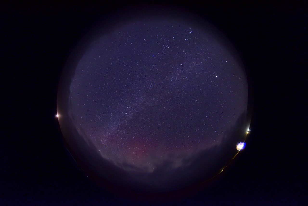 2025/12/26 13:29 更新 太陽風は530km/秒と高速ですが、磁気圏は穏やかです。アイスランドのオーロラをどうぞ。 担当 篠原 アイスランドに滞在中の藤井哲也さんと高家幹夫さんより、 現地25日夜(日本時間は今朝)と、 撮影されたばかりのオーロラ写真をいただきました。 今日の太陽風やAE指数のグラフの中の時間帯で、 速度は550km/秒と高速ですが、 磁場の南北成分は0nT付近と磁気圏への影響は小さかった様で、 AE指数はとても小さい変化が見られる程度です。 送っていただいた写真でも、オーロラの光はとても弱く、 1枚目はほとんど見えず、天の川が空を大きく横切っています。 右上にオリオン座、真ん中の少し左下にカシオペア座が見えています。 2枚目で北の空の低いところに弱いオーロラが現れています。 3枚目は同じ頃に北の空です。 この日は天気が悪く、晴れ間を探して移動しての観測だったそうで、 北の低空は雲に覆われています。 4枚目ではオーロラは弱くなっています。 画像を強調すると、左下の天の川の辺りに赤い光が残っている様です。 23日や24日に紹介した写真と一転して、とても静かな空になっています。 その変化の様子に注目して下さい。 最新情報をどうもありがとうございます。 現在の太陽風は、速度が600km/秒から530km/秒に次第に低下しています。 高速の状態は続いています。 磁場強度は、5〜6nTと平均的な状態です。 磁場の南北成分は0nT付近で小さく変化する程度で、 磁気圏への影響は小さくなっています。 磁気圏の活動は次第に小さくなっていて、 AE指数は、前半は300nTくらいの小規模の変化が続いていますが、 後半は変化が小さくなり、磁気圏は穏やかになっています。 藤井さんの写真は、ちょうどこの頃に撮影されたものです。 SDO衛星AIA193の太陽コロナ写真を見ると、 南半球の高緯度側にコロナホールが大きく広がっています。 緯度が高めですが、この領域の影響がこれから強まる可能性があります。 太陽風の速度が再び高まるかどうか、注目して下さい。 また、北東側(左上)にもコロナホールが見えています。 この領域の広がりはどのくらいでしょうか。 太陽はとても穏やかで、 X線グラフは、小さい変化が見られる程度です。 ![]() アイスランド南部で、現地(世界時)25日22時21分に撮影されたオーロラ。 (c) 藤井哲也氏 ![]() アイスランド南部で、現地(世界時)25日22時41分に撮影されたオーロラ。 (c) 藤井哲也氏 ![]() アイスランド南部で、現地(世界時)25日22時42分に撮影されたオーロラ。 (c) 高家幹夫氏 ![]() アイスランド南部で、現地(世界時)25日22時50分に撮影されたオーロラ。 (c) 藤井哲也氏 ![]() SDO衛星のAIA193カメラによる太陽コロナの様子 (c) SDO (NASA) ![]() SDO衛星による太陽の可視光写真。マウスの矢印を写真に重ねると、黒点番号付きの写真に切り替わります。 (c) SDO (NASA) ![]() ACEが観測した太陽風の磁場(黒線は全体の強度、赤線は南北成分) 磁場の向き、プラズマの密度、速度、温度 (c) データ:NOAA/SWPC、作図:宇宙天気ニュース ![]() AE指数(速報値) 下段のAEグラフの値が高くなると、オーロラ活動が活発化しています。 (c) 京都大学WDC ![]() ![]() 27日の太陽周期に合わせた図 太陽が同じ面を地球に向けていた27日前の変化から、今後を予想することができます。 (c) 作図:宇宙天気ニュース