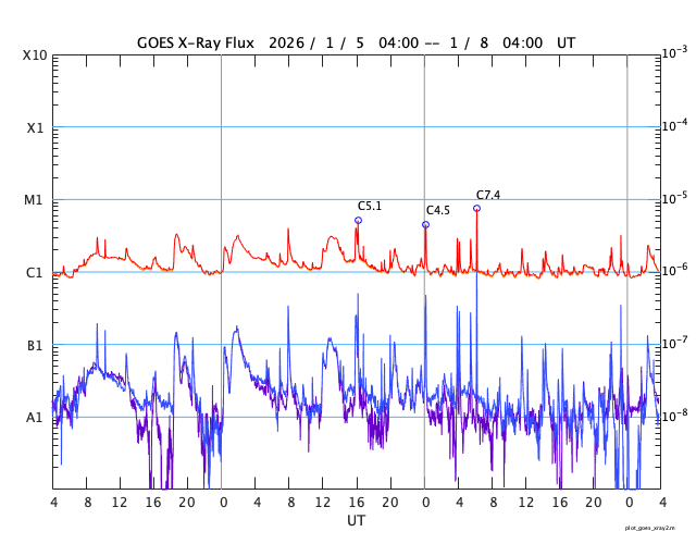GOES衛星の太陽X線強度。赤・橙 = 0.1〜0.8 nm、青・紫 = 0.05〜0.4 nm (c) データ:NOAA/SWPC、作図:宇宙天気ニュース ![]() | ||||||||||||||||||||||||||||||||||||||||||||||||||||||||||||||||||||||||||||||||||||||||||||||||||||||||||||||||||||||||||||||||||||||||||||||||||||||||||||||||||||||||||||||||||||||||||||||||||||||||||||||||||||||||||||||||||||||||||||||||||||||||||||||