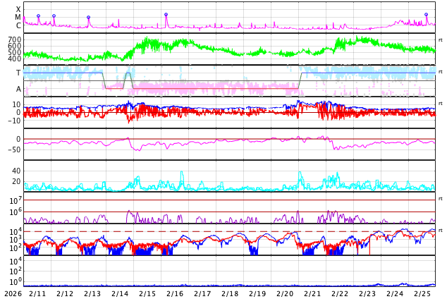 GOES衛星の太陽X線強度。赤・橙 = 0.1〜0.8 nm、青・紫 = 0.05〜0.4 nm (c) データ:NOAA/SWPC、作図:宇宙天気ニュース ![]() | |||||||||||||||||||||||||||||||||||||||||||||||||||||||||||||||||||||||||||||||||||||||||||||||||||||||||||||||||||||||||||||||||||||||||||||||||||||||||||||||||||||||||||||||||||||||||||||||||||||||||||||||||||||||||||||||||||||||||||||||||||||||||||||||||