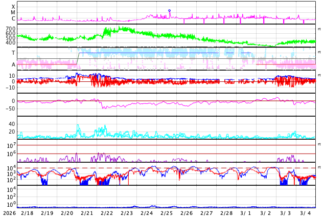 磁場強度は、昨日のニュースの後35nTに強まり、