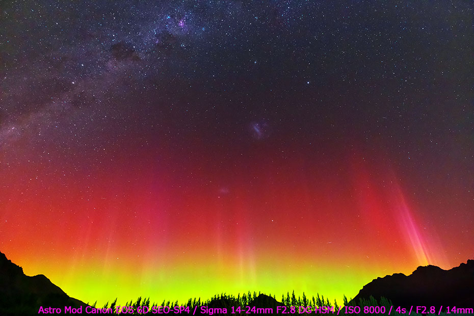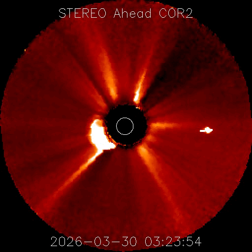 2026/ 3/30 14:01 更新 X1.4の大規模フレアが発生しました。ニュージーランドのオーロラをどうぞ。 担当 篠原 ニュージーランド南島クィーンズタウンの米戸 実さんより、 21日と22日夜に撮影されたオーロラの写真をいただきました。 前日の20日から太陽風が強まり始めていて、 1枚目の写真の頃には、速度は500km/秒近くに高まり、 磁場強度は30nTとかなり大きくなっていました。 磁気圏の活動も強まって、Dst指数は -70nT程度まで変化しました。 下層から上空にかけて光のグラデーションが広がり、 オーロラの縦の厚みを強く感じさせてくれます。 その上空には、南天の天の川が美しく輝いています。 横に傾いて南十字も写っています。 そして、湖面の輝きが本当に見事です。 2枚目は翌日で、太陽風の速度は600km/秒に高まり、 磁場強度は10nTに下がりましたが、南向きの状態が続き、 AE指数が1500nTを超えて激しく変化していた頃です。 何本も縦に伸びる光の筋が印象的です。 オーロラの写真は続きがあります。明日、掲載します。 太陽で、X1.4の大規模フレアが発生しました。 発生時刻は、30日12時(世界時30日3時)。 場所は、南東(左下)の4405黒点群です。 GOES衛星SUVI 131の動画を掲載します。 この規模のフレアの発生は、 2月4日のX4.2以来で、およそ2か月ぶりです。 このフレアに伴って、CME(コロナ質量放出)が発生しています。 SOHO衛星LASCO C2と、 太陽を地球よりも右斜めから観測しているSTEREO Ahead衛星COR2 の動画を掲載します。 フレアの発生から時間があまり経っていないので、 噴出の最初の頃の画像しかなく、 CMEの広がり方ははっきりとはわかりません。 フレアの発生位置から考えると、 太陽風の乱れは地球にやってくるのではないでしょうか。 発生から2日程度かかると考えると、明後日、4月2日の昼頃でしょうか。 注目して下さい。 太陽風は、昨日は350km/秒と低速だったのですが、 昨夜くらいから上昇が始まって、 現在は470km/秒と高速風に近い速さまで高まっています。 磁場強度は、7nTから13nTへ強まり、 現在は8nTに下がっています。 磁場の南北成分は、0nT付近から北寄りになり、 現在は0nT付近に戻っています。 現在の磁気圏は穏やかで、 AE指数は、前半に小規模の変化が起きていますが、 後半は変化が見られなくなっています。 GOES衛星SUVI 195では、 赤道域のコロナホールが、太陽の中心線に達しています。 この領域の影響とCMEの乱れが重なるように到来するかもしれません。 ![]() ニュージーランド南島クィーンズタウンで、現地21日22時43分(世界時21日9時43分)に撮影されたオーロラ。 (c) 米戸 実氏 ![]() ニュージーランド南島クィーンズタウンで、現地22日23時26分(世界時22日10時26分)に撮影されたオーロラ。 (c) 米戸 実氏 ![]() 4405黒点群で発生した、X1.4の大規模フレア。 (c) GOES衛星SUVI 131 (NOAA)、(動画加工 : 宇宙天気ニュース) ![]() 太陽の左下へ広がるCME。 (c) SOHO衛星LASCO C2 (ESA & NASA)、(動画加工 : 宇宙天気ニュース) ![]() 太陽を地球よりも右斜めから観測しているSTEREO Ahead衛星によるCME。 (c) STEREO Ahead衛星COR2 (NASA)、(動画加工 : 宇宙天気ニュース) ![]() GOES衛星のSUVI 195カメラによる太陽コロナの様子 (c) NOAA/SWPC ![]() SDO衛星による太陽の可視光写真(SOHO衛星の画像ページより取得)。 マウスの矢印を写真に重ねると、黒点番号付きの写真に切り替わります。 (c) SDO (NASA) ![]() GOES衛星の太陽X線強度。赤・橙 = 0.1〜0.8 nm、青・紫 = 0.05〜0.4 nm (c) データ:NOAA/SWPC、作図:宇宙天気ニュース ![]() ACEが観測した太陽風の磁場(黒線は全体の強度、赤線は南北成分) 磁場の向き、プラズマの密度、速度、温度 (c) データ:NOAA/SWPC、作図:宇宙天気ニュース ![]() AE指数(速報値) 下段のAEグラフの値が高くなると、オーロラ活動が活発化しています。 (c) 京都大学WDC ![]() ![]() 27日の太陽周期に合わせた図 太陽が同じ面を地球に向けていた27日前の変化から、今後を予想することができます。 (c) 作図:宇宙天気ニュース