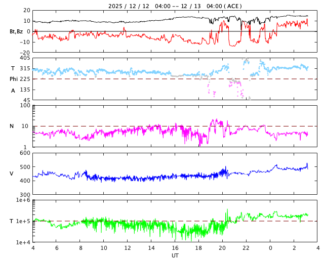 太陽風の速度が500km/秒に高まっています。太陽は穏やかになりそうです。