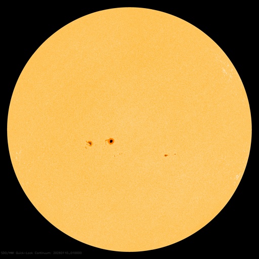 SDO衛星による太陽の可視光写真。マウスの矢印を写真に重ねると、黒点番号付きの写真に切り替わります。