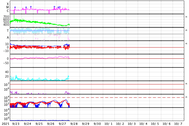GOES衛星の太陽X線強度。赤・橙 = 0.1〜0.8 nm、青・紫 = 0.05〜0.4 nm (c) データ:NOAA/SWPC、作図:宇宙天気ニュース ![]() | |||||||||||||||||||||||||||||||||||||||||||||||||||||||||||||||||||||||||||||||||||||||||||||||||||||||||||||||||||||||||||||||||||||||||||||||||||||||||||||||||||||||||||||||||||||||||||||||||||||||||||||||||||||||||||||||||||||||||||||||||||||||||||||||||||||||||||||||||||||||||||||||||||||||||||||||||||||