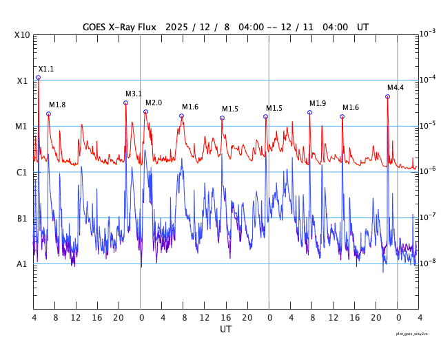 GOES衛星の太陽X線強度。赤・橙 = 0.1〜0.8 nm、青・紫 = 0.05〜0.4 nm (c) データ:NOAA/SWPC、作図:宇宙天気ニュース ![]() | |||||||||||||||||||||||||||||||||||||||||||||||||||||||||||||||||||||||||||||||||||||||||||||||||||||||||||||||||||||||||||||||||||||||||||||||||||||||||||||||||||||||||||||||||||||||||||||||||||||||||||||||||||||||||||||||||||||||||||||||||||||||||||||||||||||||||||||||||||||||||||||||||||||||||||||||||||||||||||||||||||||||||||||||||||