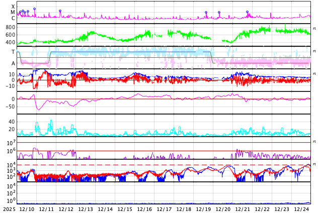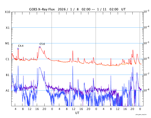 GOES衛星の太陽X線強度。赤・橙 = 0.1〜0.8 nm、青・紫 = 0.05〜0.4 nm (c) データ:NOAA/SWPC、作図:宇宙天気ニュース ![]() | |||||||||||||||||||||||||||||||||||||||||||||||||||||||||||||||||||||||||||||||||||||||||||||||||||||||||||||||||||||||||||||||||||||||||||||||||||||||||||||||||||||||||||||||||||||||||||||||||||||||||||||||||||||||||||||||||||||||||