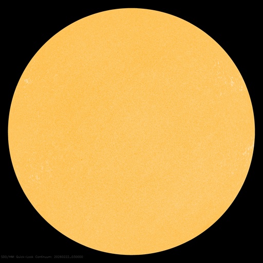 2026/ 2/22 13:12 更新 太陽は無黒点に近い状態です。高速の太陽風が続いています。 担当 篠原 太陽は、北西の端(右上)にあった4374黒点群が 向こう側に進んで見えなくなり、 無黒点に近い状態になっています。 それでも、SDO衛星の可視光写真を拡大すると、 小さい黒点が所々に見えている様で、 掲載の写真では、 中心部南東側(左下)に小さい点を見つけることができます。 WDC-SILSOの記録としては、今日の黒点相対数はどうなるでしょうか。 X線グラフでは、C1の小さいフレアが発生しています。 北西の端に沈んだ4374群で起きています。 太陽風は、速度が500km/秒から550km/秒に高まり、 より高速になっています。 磁場強度も10〜15nTと強まった状態です。 磁場の南北成分は、前半は北向きでしたが、 途中から南北に大きく変化する様になっています。 磁気圏の活動も、穏やかな状態からやや強まった状態に変わっていて、 AE指数は、変化のない時間帯が半日ほど続いた後、 500nTくらいの小、中規模の変化が続くようになっています。 SDO衛星AIA193では、北半球のコロナホールが西側(右側)に進んでいます。 1〜2日後くらいから、この領域の影響が強まりそうです。