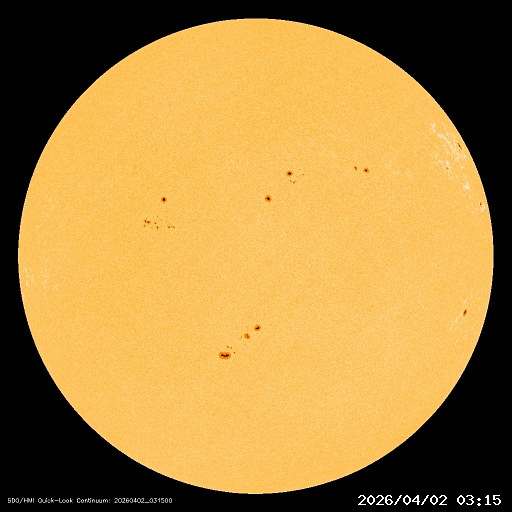 2026/ 4/ 2 13:14 更新 小規模の太陽風の乱れが到来しました。太陽風の速度は450km/秒に上がった程度です。 担当 篠原 30日のCME(コロナ質量放出)による太陽風の乱れは、 昨夜、1日20時半(世界時1日11時半)頃にACE衛星で観測され、 地球へは1日21時(世界時1日12時)頃に到来しています。 変化は小幅で、 太陽風の速度は、400km/秒から450km/秒へ、 磁場強度は、6nTから15nTへ強まった程度です。 磁場の南北成分は0nT付近で変化したので、 磁気圏への影響は小さく、 AE指数は300nTの小規模の変化が発生した程度です。 その後、太陽風の速度は400km/秒に下がり、 グラフの後半で再び450km/秒に高まっています。 速さとしては平均的な状態です。 磁場強度は、10nT前後で推移しています。 グラフの後半で磁場の南北成分が大きく変化する様になり、 AE指数も、グラフの最後に700nTと中規模の変化が発生しています。 GOES衛星SUVI 195では、 赤道域のコロナホールは西側(右側)に進んでいます。 この領域の影響で、太陽風の速度はもう一段高まるかもしれません。 太陽では、中心部東側(左側)の4409黒点群の活動が少し強まって、 C5.3、C8.1、C4.7と小規模フレアが続いています。 この変化に続く様に、今朝、2日8時(世界時1日23時)に、 北西(右上)の4403群でC6.1の小規模フレアが発生しました。 GOES衛星SUVI 131の動画を掲載します。 GOES衛星SUVI 304の動画を見ると、 フレアとともにフィラメント噴出が発生しています。 これによりCMEが太陽の右上寄りに飛び出しています。 GOES衛星CCOR-1の動画を掲載します。 この動画では、CMEのガスは太陽の左下にも淡く広がっています。 このため、太陽風の乱れは地球の方向にも噴出している様です。 3日後くらいに、 磁場の強まりなどの太陽風の乱れがやって来るかもしれません。
