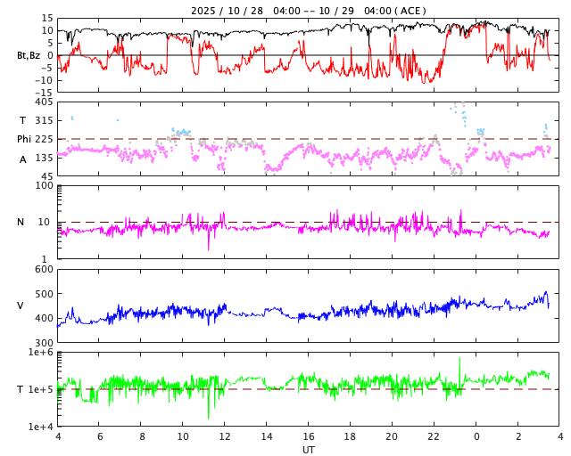 太陽風はやや高速になっています。コロナホールの影響が始まりそうです。