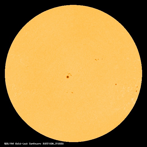による太陽の可視光写真(SOHO衛星の画像ページより取得)。